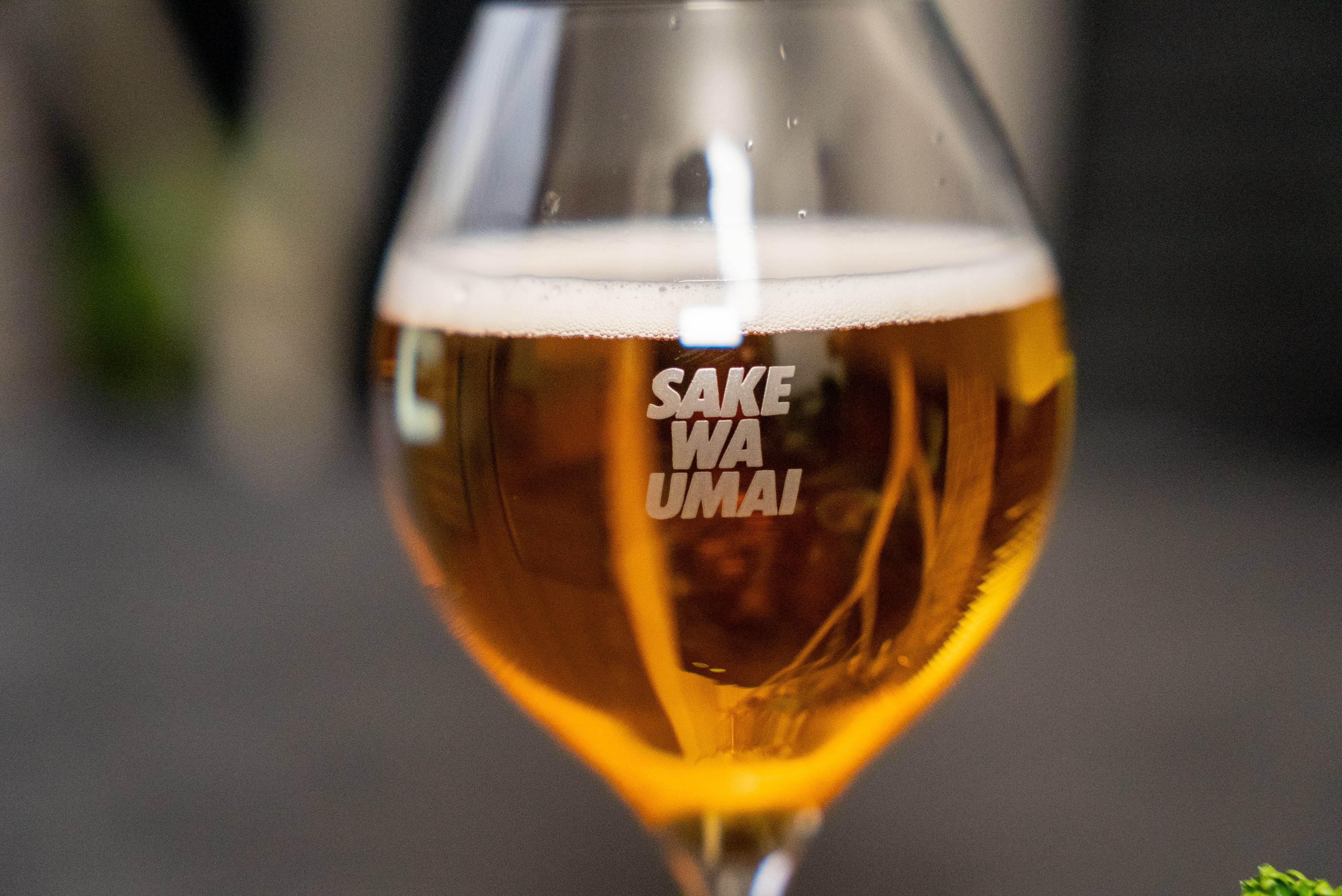デザインは、酒好きの心をつかみ魅力的な「SAKE WA UMAI」の文字が大胆に文字入れされております。